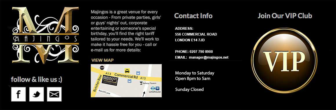 Majingos - Docklands Premiere Gentleman's Club. From private parties, girls' or guys' nights' out, corporate entertaining or someone's special birthday,